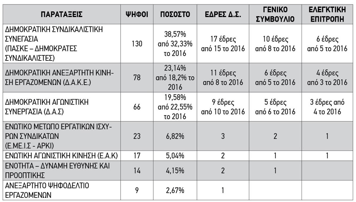 Πρώτη δύναμη η Δημοκρατική Συνδικαλιστική Συνεργασία με 38,57%