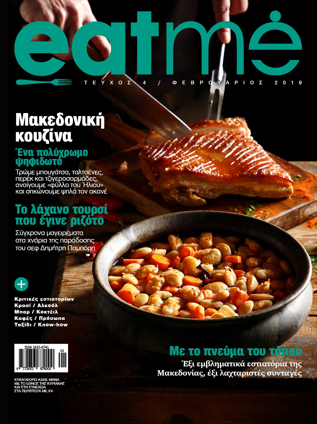 Το τέταρτο τεύχος του eatme είναι αφιερωμένο στη Μακεδονία και τις γεύσεις της. Μια ώσμωση στοιχείων από τις κουζίνες των Βλάχων, των Σαρακατσάνων, των Ελλήνων της Μικράς Ασίας και του Πόντου, αλλά και των γευστικών συνηθειών της αρμένικης και της εβραϊκής κοινότητας, η μακεδονίτικη κουζίνα αποκαλύπτει το πολύχρωμο ψηφιδωτό της. Το αφιέρωμα που διατρέχει το μεγαλύτερο μέρος του τεύχους μεταφέρει μια ζωντανή εικόνα από τα εστιατόρια, τα προϊόντα και τους αμπελώνες της περιοχής.