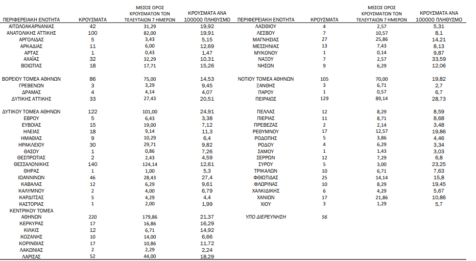 Η ημερήσια ενημέρωση του ΕΟΔΥ