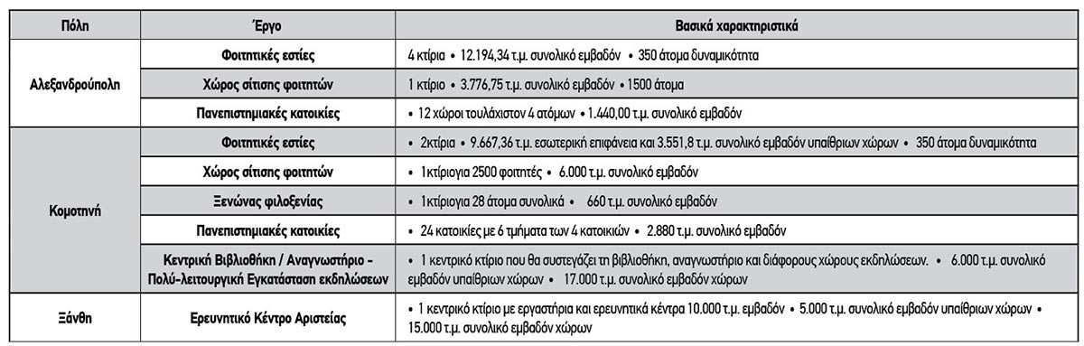 Οι υποδομές των φοιτητικών κατοικιών (σε Κομοτηνή και Αλεξανδρούπολη) θα αποτελέσουν σημαντικά έργα που θα βελτιώσουν την ποιότητα ζωής και την εκπαιδευτική εμπειρία των φοιτητών του Πανεπιστημίου.